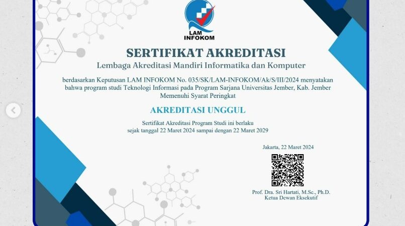 Program Studi S1 Teknologi Informasi Fakultas Ilmu Komputer Universitas Jember (Fasilkom UNEJ) Resmi memenuhi syarat peringkat Akreditasi Unggul dari Lembaga Akreditasi Mandiri Informatika dan Komputer (LAM INFOKOM) yang sebelumnya mengadakan […]