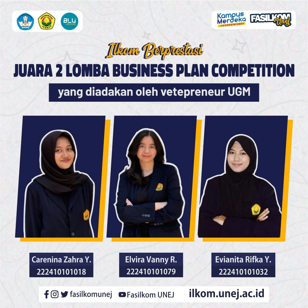Tim dari Fasilkom UNEJ yang beranggotakan 3 mahasiswi kemarin berhasil memenangkan juara 2 Lomba Business Plan Competition yang diadakan oleh Vetepreneur UGM