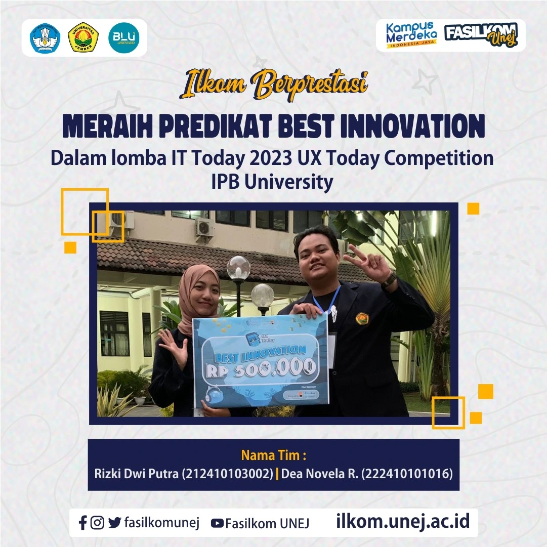 Mahasiswa/Mahasiswi dari FASILKOM UNEJ kemarin meraih predikat Best Innovation dalam lomba IT Today 2023 UX Today Competition IPB University lhoo, wahh keren banget kann Kami keluarga besar Fakultas Ilmu Komputer […]